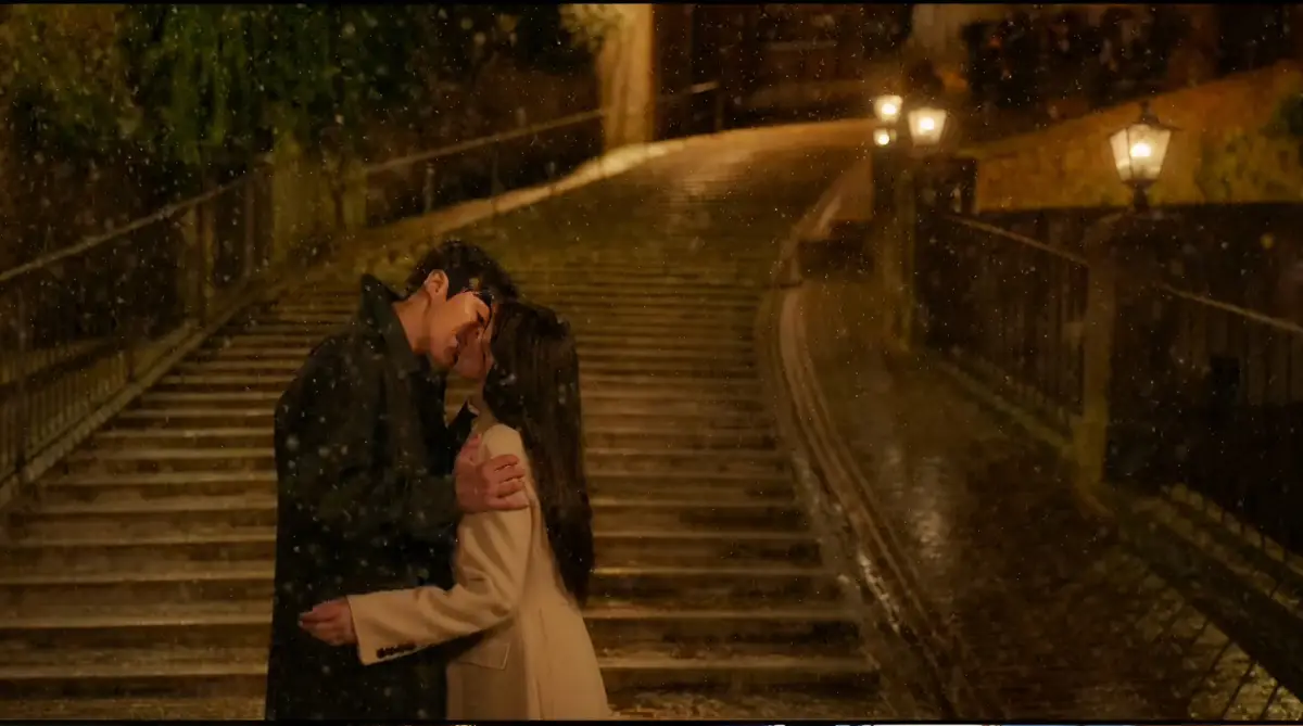 在那道見證無數錯身與遲疑的階梯前, 兩人再次站在彼此面前。 茂熙坦率說出早已失控的情感, 而浩鎮這一次,選擇不再後退。 漫天飛雪之中, 他們以一個吻, 為這段長久困於語言的關係畫下新的起點。