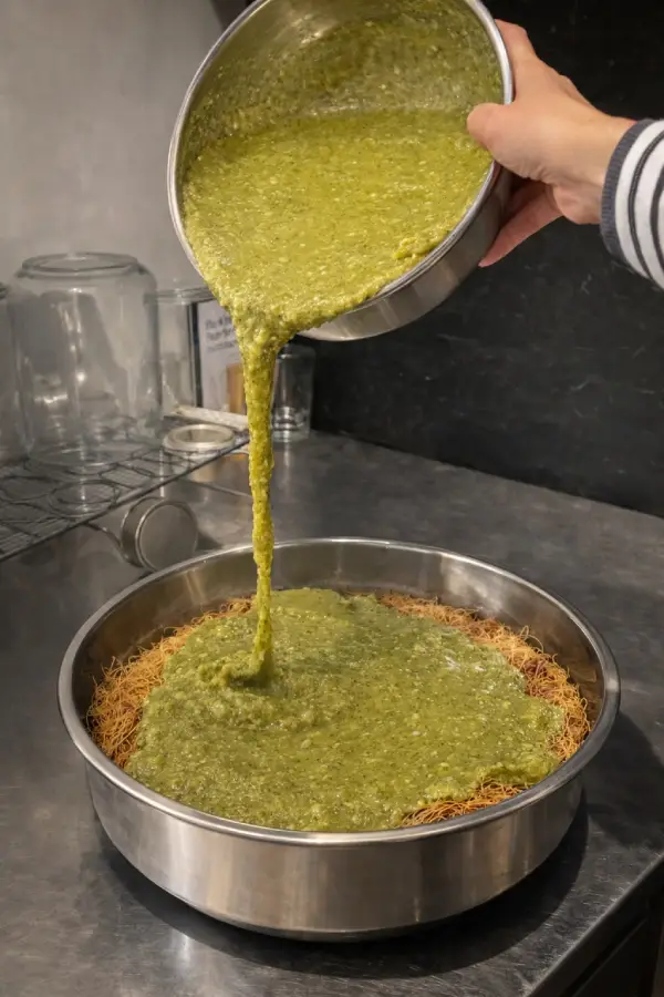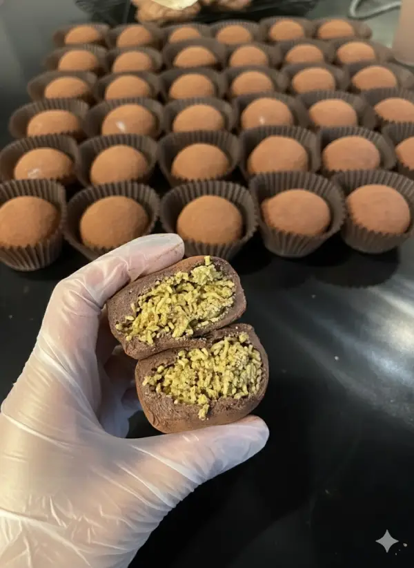 - 一條條被巧克力包裹的細麵結構: 卡代夫細麵 (Kadayif) 均裹上抹醬。