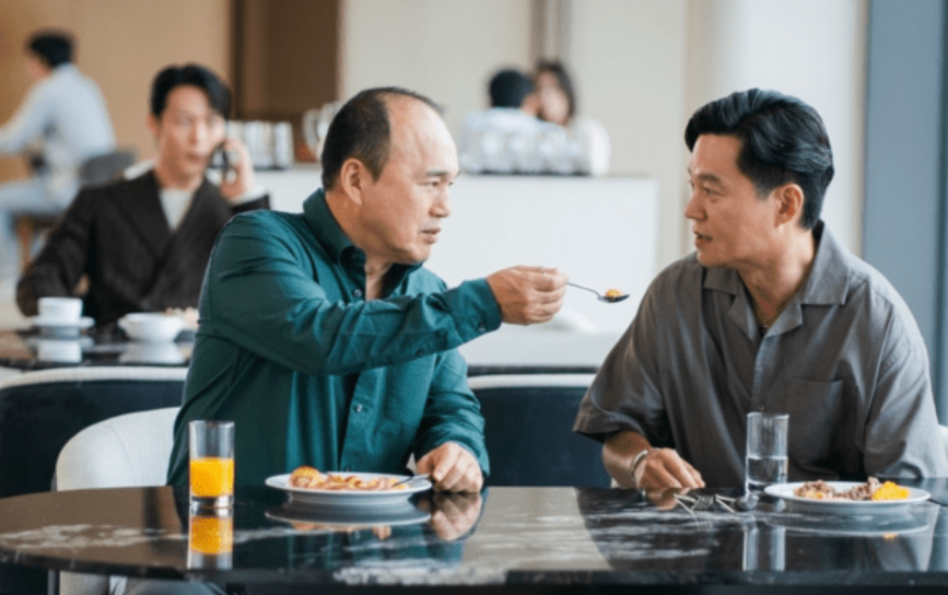 場景位於飯店餐廳,金光奎餵李瑞鎮吃飯的畫面搭配冷淡反應,