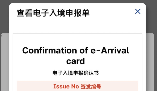 系統會跳出 View e-Arrival card 的確認視窗,代表申報已成功。
