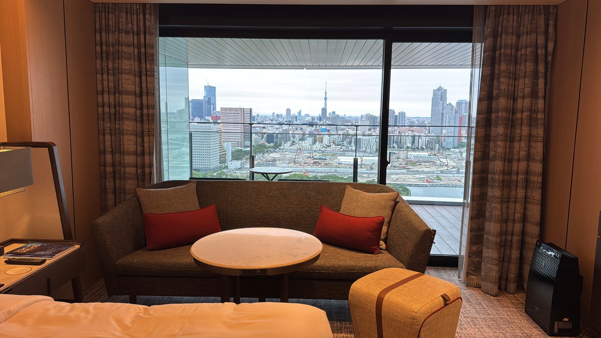 - 大廳 16 樓落地窗能看到東京灣、竹芝、晴空塔,日夜視覺差異極大。