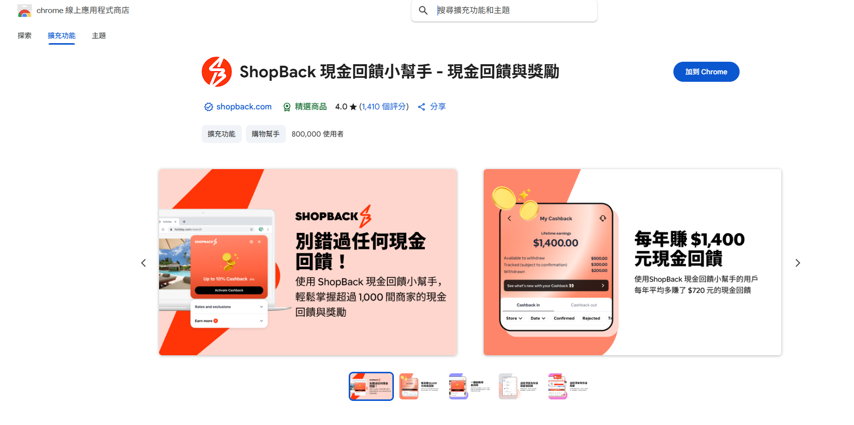 3️⃣ 連上 Chrome 線上應用程式商店 的ShopBack 現金回饋小幫手